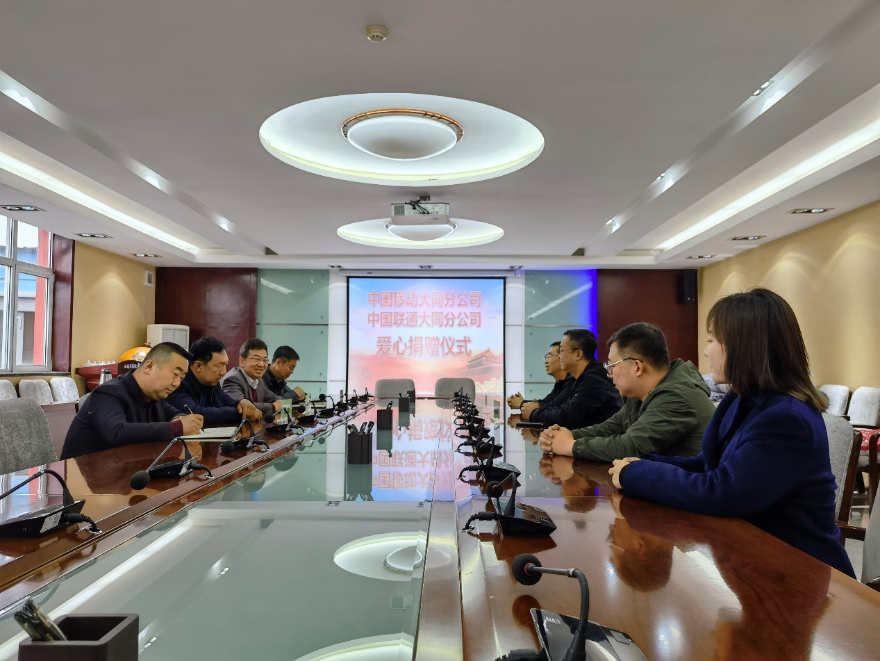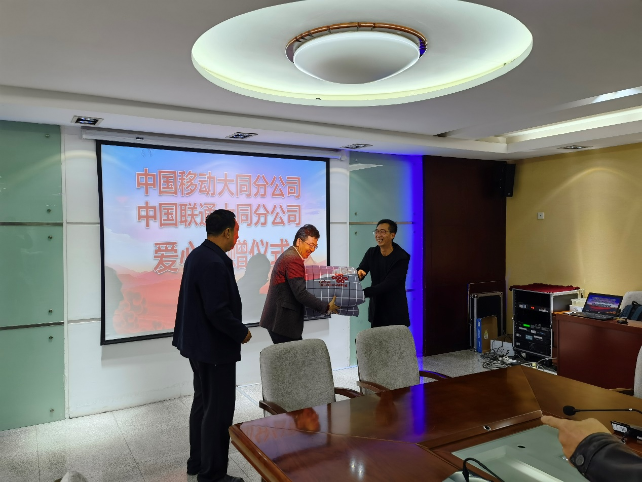 10月6日下午,中國移動通信集團大同分公司、中國聯通有限公司大同分公司向我校家庭經濟困難學生捐贈生活用品儀式在行知樓14層會議室舉行。此次捐贈由校計算機網絡中心組織發起,中國移動大同分公司捐贈生活用品(床上用品七件套)70套,中國聯通大同分公司捐贈生活用品(床上用品六件套)50套。