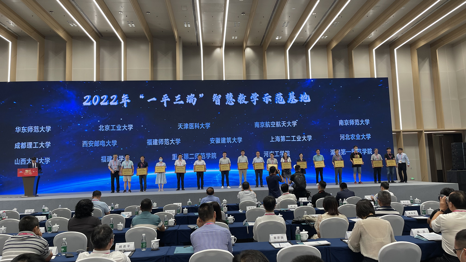 論壇舉行了“一平三端”成果展示和授牌儀式。我校與華東師范大學、北京工業大學、天津醫科大學、南京航空航天大學、南京師范大學、成都理工大學、西安郵電大學等共32所高校被授予“一平三端”智慧教學示范基地。我校作為山西唯一一所入圍高校,由校黨委常委、翟大彤副校長上臺接受牌匾。