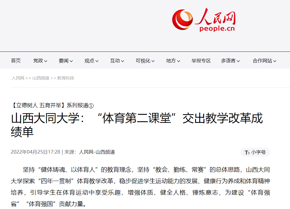4月,人民網、新華網、人民號、山西日報、山西晚報、山西新聞網、黃河新聞網、瀟湘晨報、新浪網等央媒、省媒、市媒持續(xù)聚焦我校“第二課堂”開展成效進行報道,集中展示我校“第二課堂”獨特的育人風采,展示同大人朝氣蓬勃的精神風貌和健康高雅的生活追求。