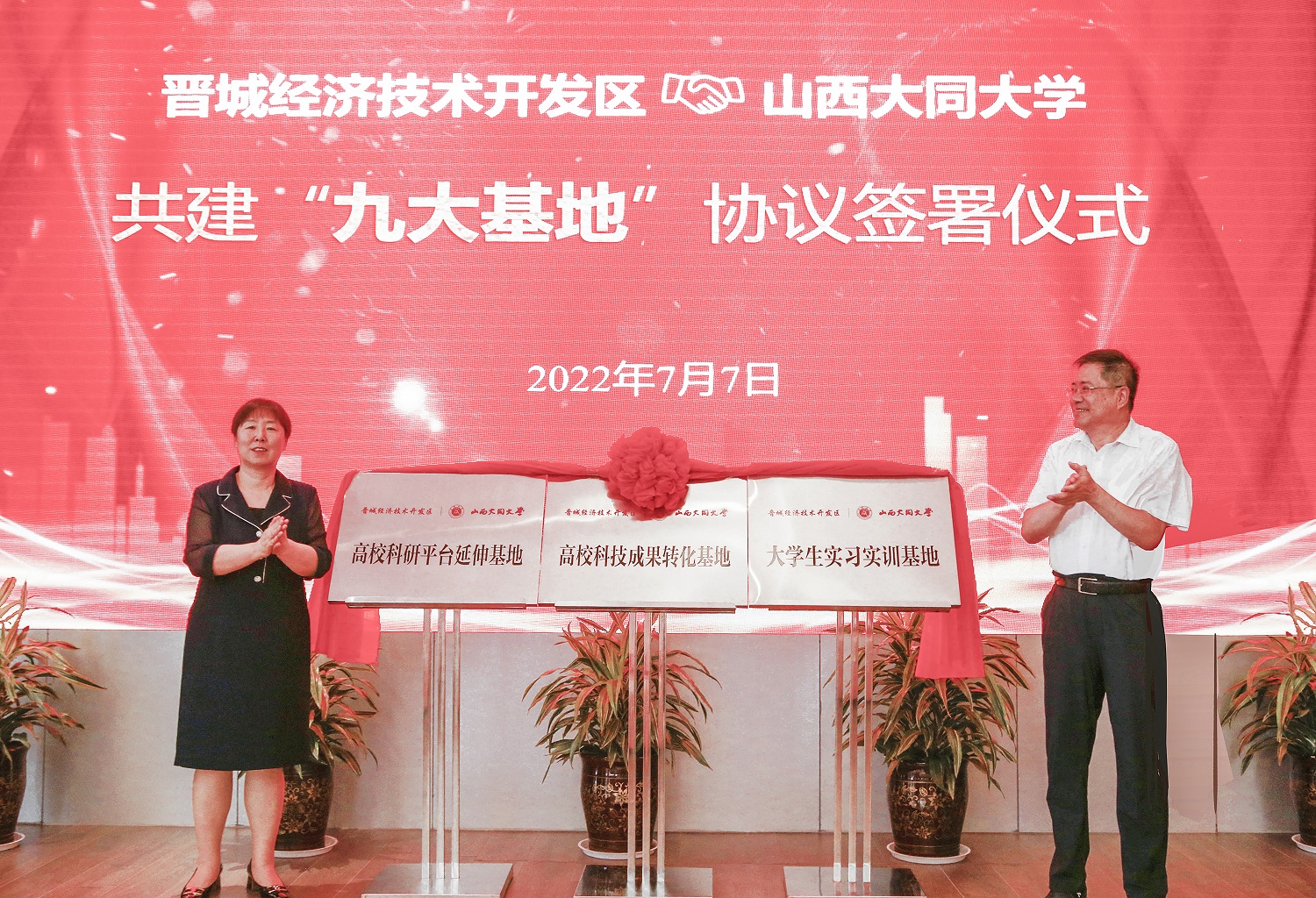7月7日,山西大同大學與晉城經濟技術開發(fā)區(qū)合作共建“九大基地”協(xié)議簽署暨揭牌儀式在山西晉城智創(chuàng)城隆重舉行。校黨委副書記、校長姚麗英,晉城經濟技術開發(fā)區(qū)黨工委書記、管委會主任史小林出席儀式。