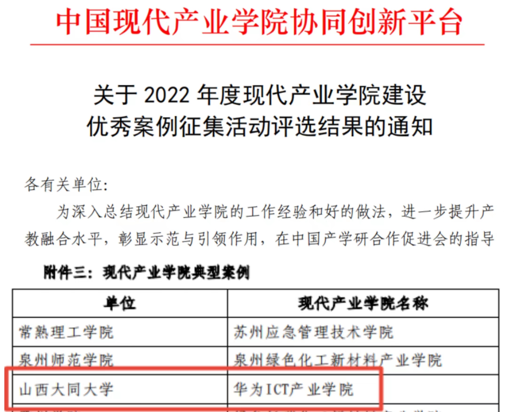 8月22日,我校計算機與網絡工程學院教學團隊申報的“山西大同大學華為ICT產業(yè)學院”被評為2022年現(xiàn)代產業(yè)學院建設典型案例,是山西省唯一入選案例。