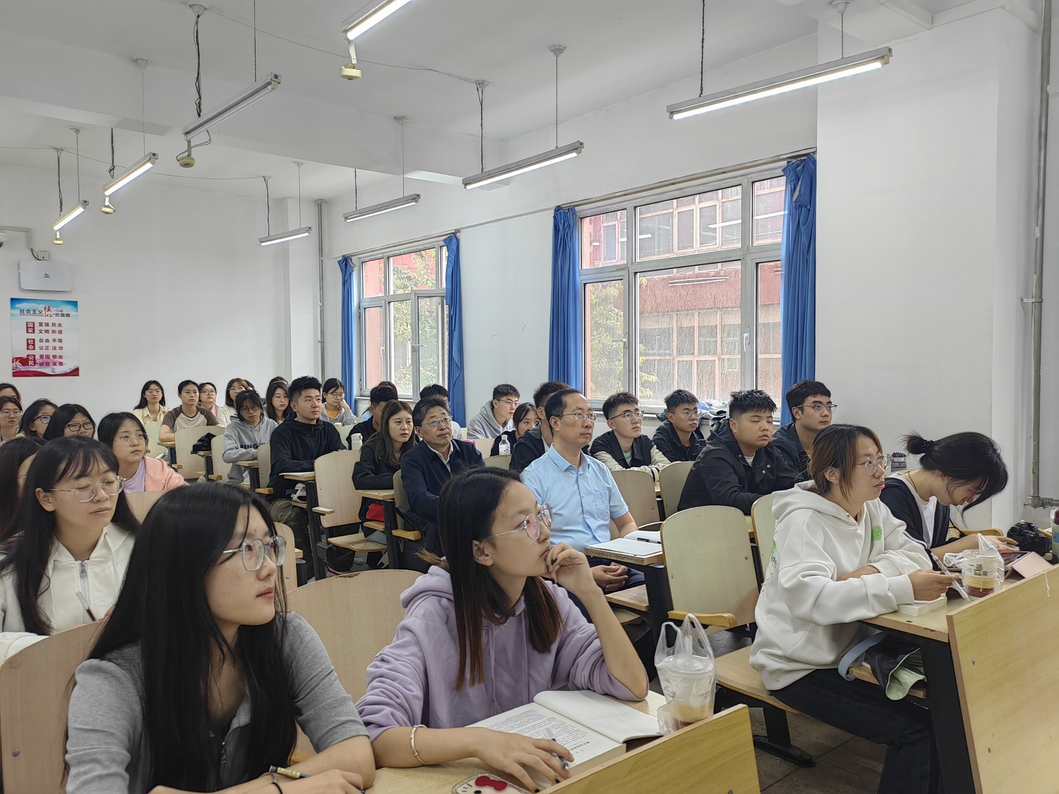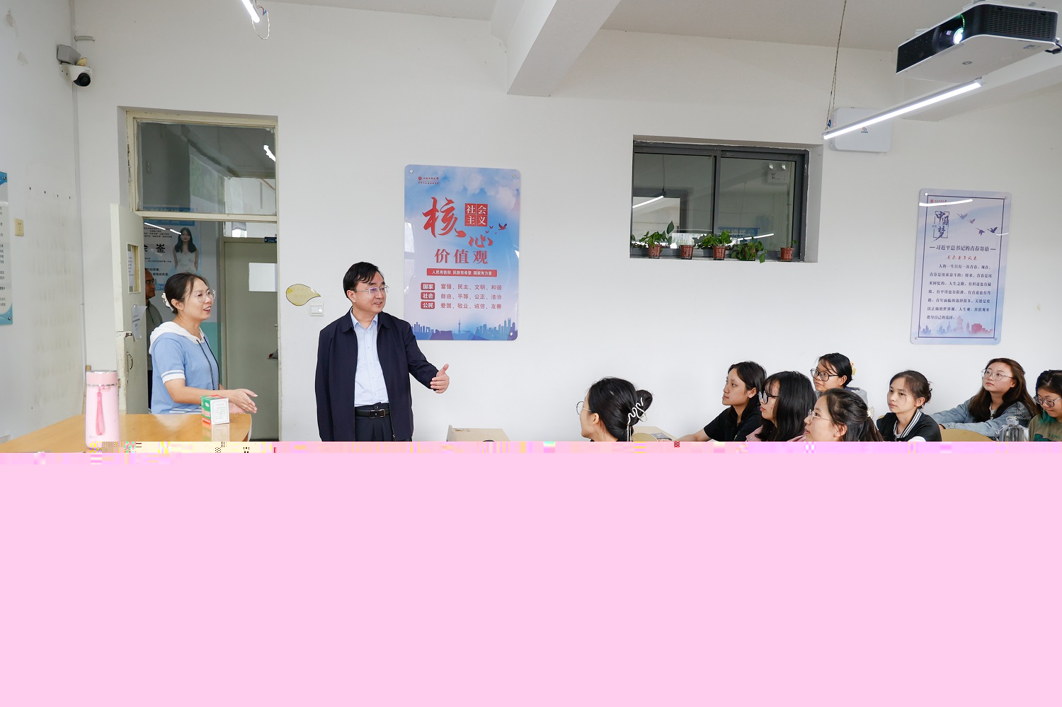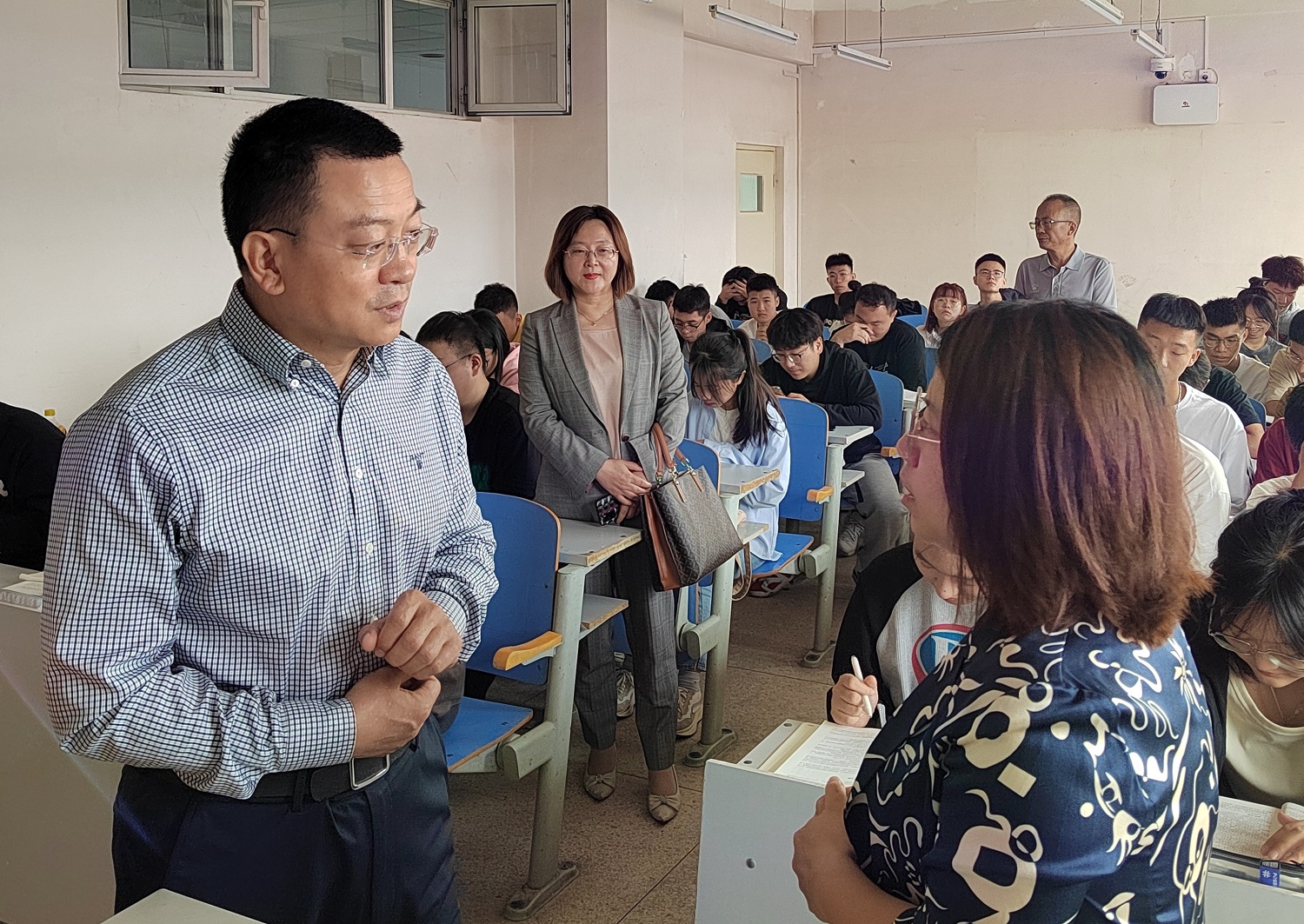 課間,趙水民與同學們親切交流,詢問他們的假期生活、新學期計劃等情況,認真傾聽他們對課堂教學的意見建議,叮囑同學們要以嶄新的面貌和最佳的狀態投入新學期的學習生活當中,鼓勵同學們要樹立遠大理想,錘煉過硬本領,珍惜當下、不負韶華,用奮斗書寫無悔青春。