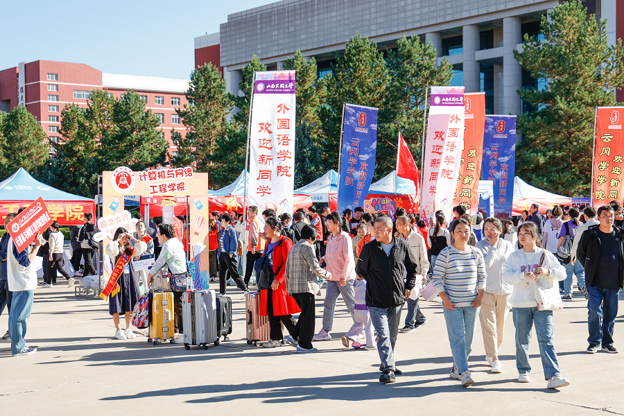 云天收夏色,木葉動秋聲。九月的同大校園如一幅濃墨重彩的淺秋畫,滿“新”歡喜、以“心”迎新便是畫中最美的點綴:火車站、南站、汽車站均安排有接待點和接站車輛,為新生直達學校提供便捷服務;校門內“熱烈歡迎2023級新同學”的巨幅展板格外醒目,吸引著眾多家長、新生駐足打卡;兼具場地示意和報到流程導航功能的迎新導覽指南“大而全”,讓新生和家長一目了然;各學院獨具一格的“迎新展陳”,處處體現著學院特色和人文關懷;宣傳學生資助政策的“綠色通道辦理處”,為困難學生免費提供入學“愛心禮包”;“新生參軍入伍政策咨詢站”赫然在列,從入校之日起便對新生開展國防教育,引導他們樹立遠大理想、矢志報效祖國;“心理健康宣傳點”人頭攢動,新生們紛紛來此感受“心靈港灣”的神韻和魅力;迎新現場的醫療服務點和家長休息區,全力為新生和家長提供健康和休息保障;還有各迎新點志愿服務、信息采集、學院接待、辦理入住“一站式”服務……無不讓新生和家長感受到家的溫暖。