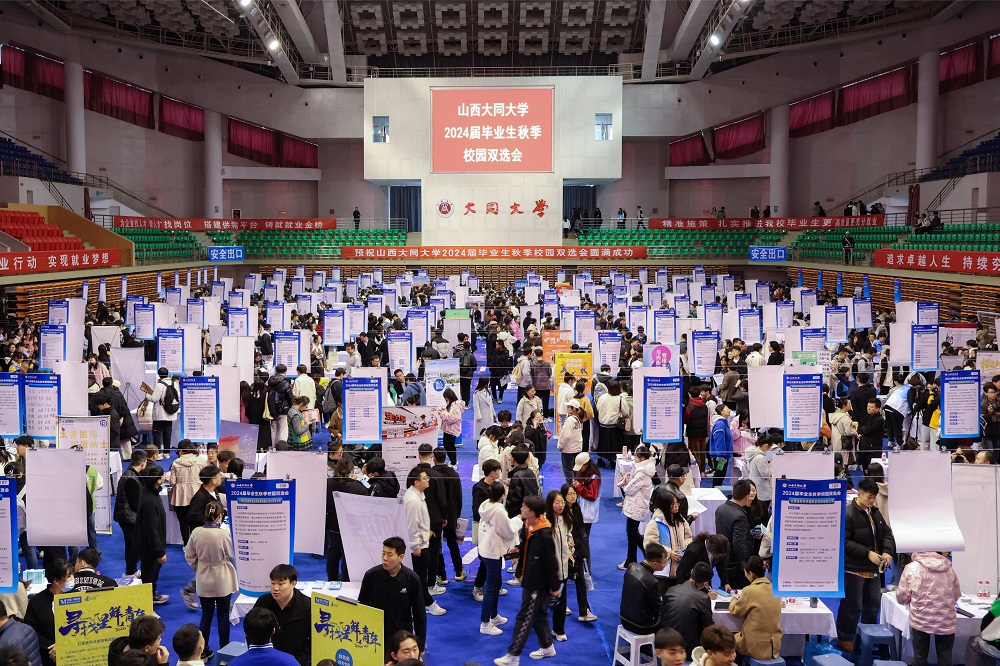 ?? 11月5日,我校2024屆畢業(yè)生秋季校園招聘雙選會(huì)在御東校區(qū)天翔體育館舉行。來(lái)自北京、廣東、內(nèi)蒙古、河北、山西等地的200余家用人單位赴會(huì)攬才,帶來(lái)7000多個(gè)就業(yè)崗位,涉及礦業(yè)、教育、生物醫(yī)藥、食品、科技、新能源、電力、物流、文旅等多個(gè)領(lǐng)域。校黨委副書記、校長(zhǎng)姚麗英,校黨委副書記寇福明來(lái)到雙選會(huì)現(xiàn)場(chǎng)調(diào)研指導(dǎo)工作。