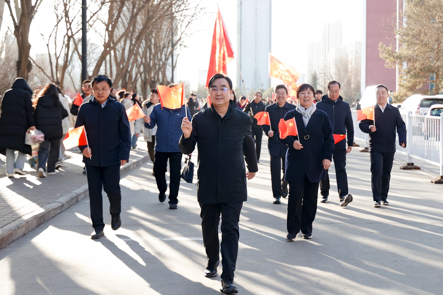 隨著全民健身運動啟動,健步走活動正式開始,校領導們加入到健步走隊伍中,邁著矯健步伐,引領隊伍穿行在美麗的同大校園。教職員工們按照指定路線文明、有序、安全進行健步走活動,一路歡聲笑語、輕松愉快,為校園增添了一道亮麗的風景線,展示了同大教職工的風采。