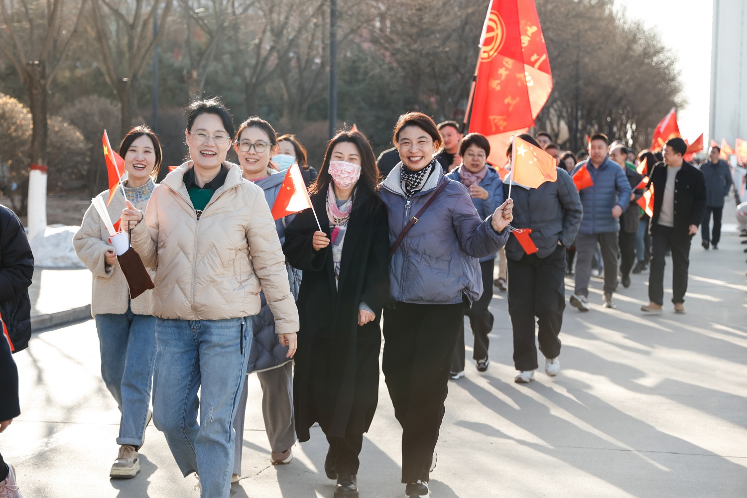 春風有信,花開有期。3月8日,我校各基層黨委、部門單位、分工會約1800名教職員工齊聚御東校區,參加學校第三屆全民健身運動啟動儀式和關愛女教職工健步走活動,共同慶祝第114個“三八”國際勞動婦女節,活動由校工會、校婦聯舉辦。校領導趙水民、姚麗英、寇福明、郭繼林、張旻等出席啟動儀式并參加健步走活動。校黨委書記趙水民宣布全民健身運動啟動,并為健步走活動開始鳴槍。