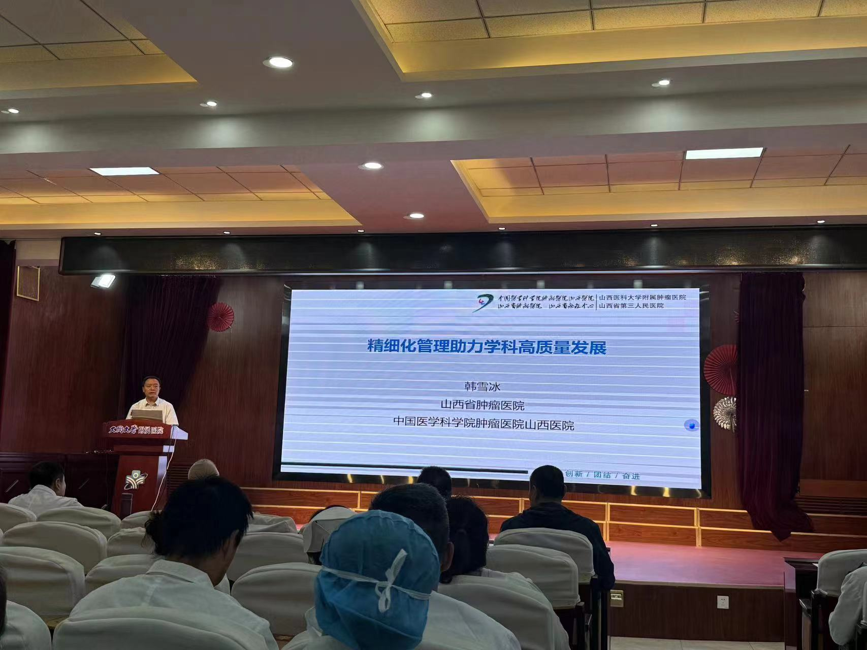 為深入推進中西醫結合轉型工作和等級醫院評審迎評工作,推動醫院高質量發展。附屬醫院于9月4日邀請中國醫學科學院腫瘤醫院(山西省腫瘤醫院)韓雪冰教授來院授課。院黨委書記張月東,院黨委副書記、院長陳勇,副院長尉洪昌,副院長李鵬出席會議,各職能部門、臨床科室負責人及醫護人員共計260余人參加培訓。