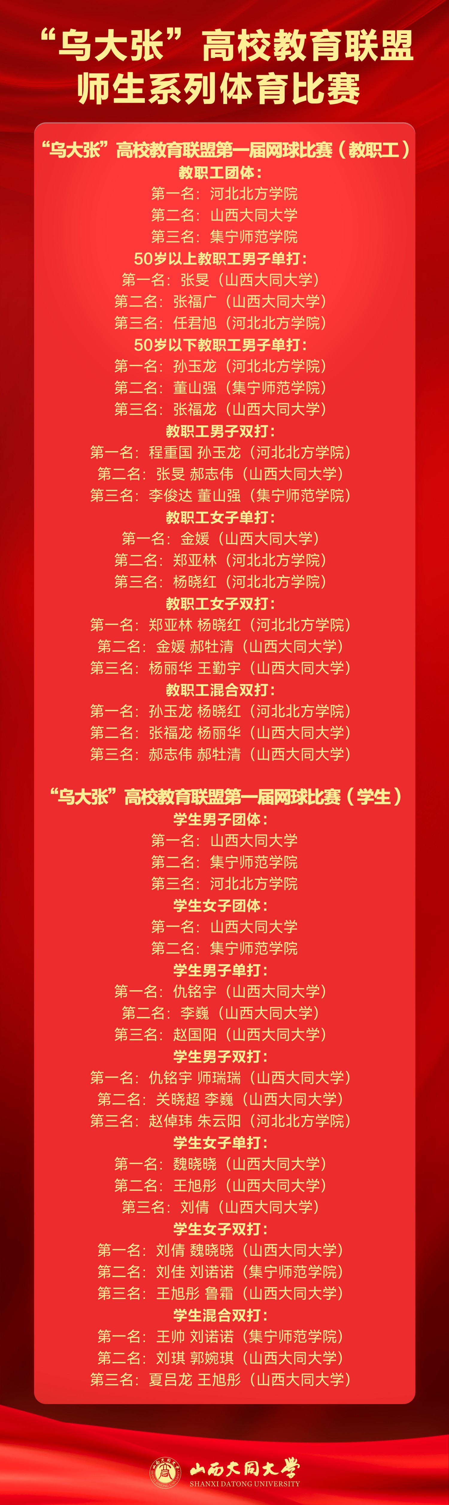 “烏大張”高校教育聯盟師生體育系列比賽獲獎名單