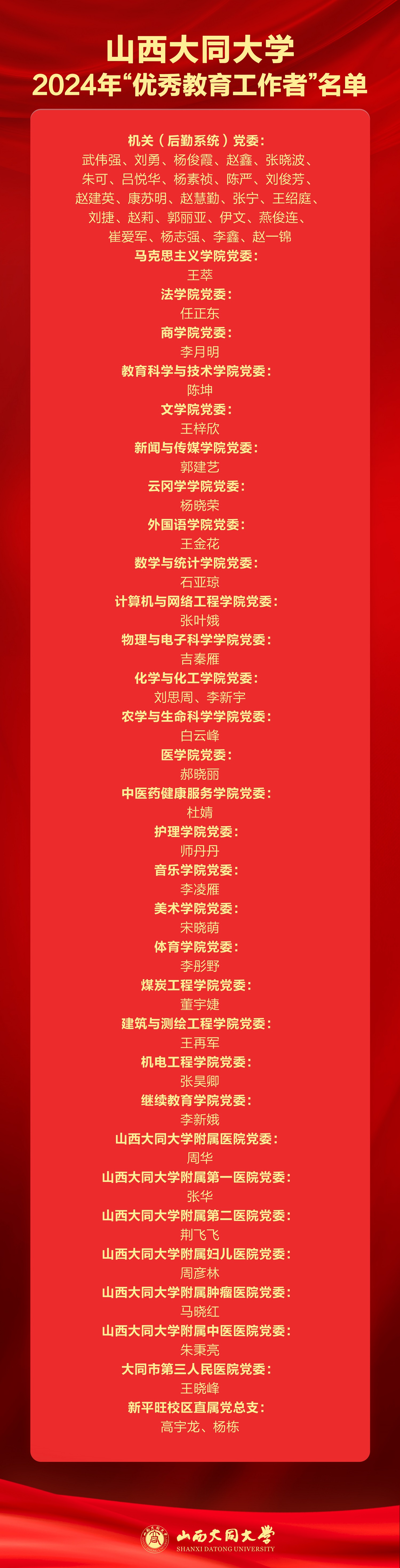 ?編者按:強國必先強教,強教必先強師。教師是立教之本、興教之源,是學校推進高水平應用型大學高質量發展的重要源泉動力。全國教育大會上,習近平總書記對教師隊伍建設進一步提出要求,強調要實施教育家精神鑄魂強師行動,加強師德師風建設,提高教師培養培訓質量,培養造就新時代高水平教師隊伍。面對新形勢、新挑戰、新機遇,我們迫切地需要一批又一批的好老師。為大力弘揚教育家精神,展示我校教師潛心立德樹人、教學科研的良好精神風貌,宣傳部、教師工作部聯合推出2024年“教書育人標兵”“管理服務育人標兵”風采展示,集中報道我校2024年教師節受表彰的優秀個人事跡。