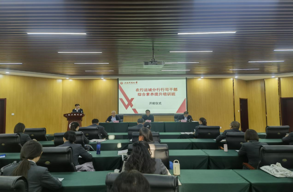 當(dāng)前位置:? 10月25日上午,在文德樓一層會(huì)議室,由中國農(nóng)業(yè)銀行運(yùn)城市分行主辦,繼續(xù)教育學(xué)院承辦的“農(nóng)行運(yùn)城市分行行司干部綜合素養(yǎng)提升培訓(xùn)班”舉行開班儀式。農(nóng)業(yè)銀行運(yùn)城市分行副行長孫江濤、運(yùn)城農(nóng)銀人壽分公司經(jīng)理寇國宏、繼續(xù)教育學(xué)院院長徐忠出席開班儀式。