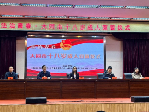 當(dāng)前位置:? 弘揚(yáng)憲法精神,加強(qiáng)憲法宣傳,應(yīng)大同市實(shí)驗(yàn)中學(xué)的邀請(qǐng),校團(tuán)委組織我校法學(xué)院師生,于12月5日參加法治青春·大同市十八歲成人宣誓儀式。團(tuán)市委領(lǐng)導(dǎo)、實(shí)驗(yàn)中學(xué)領(lǐng)導(dǎo)、法學(xué)院教師代表出席本次活動(dòng)。