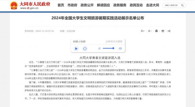 來源:大同市人民政府官網 2024-12-24 責編:余致楠