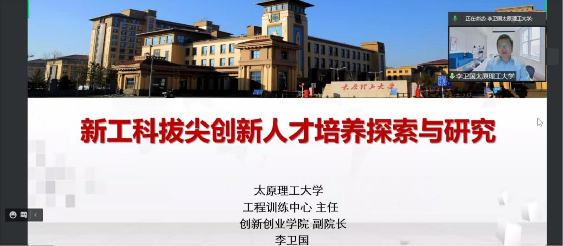 9月27日,由太原理工大學工程訓練中心主任、創新創業學院副院長李衛國教授帶來第一講“新工科拔尖創新人才培養探索與研究”。講座通過線上直播形式進行,我校各學院承擔大學生創新創業、學科競賽、學生大創項目的青年教師參加培訓。