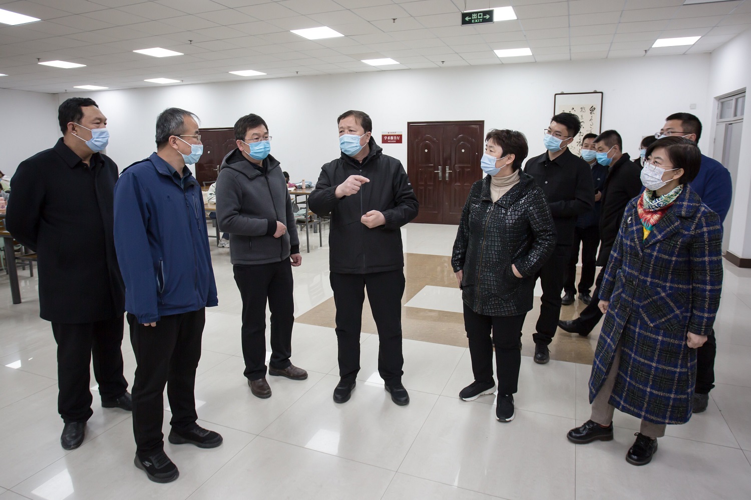 圖書館內,同學們分散就坐,有的在奮筆疾書,有的在專心閱讀,到處是一派寧靜祥和的溫馨氛圍。弓永華、姚麗英來到圖書館,查看館內疫情防控工作落實情況,了解部門2022年重點工作部署,重點就用好館藏圖書資源、用活空間資源,為廣大師生員工打造高水平知識殿堂和學習空間開展調研。
