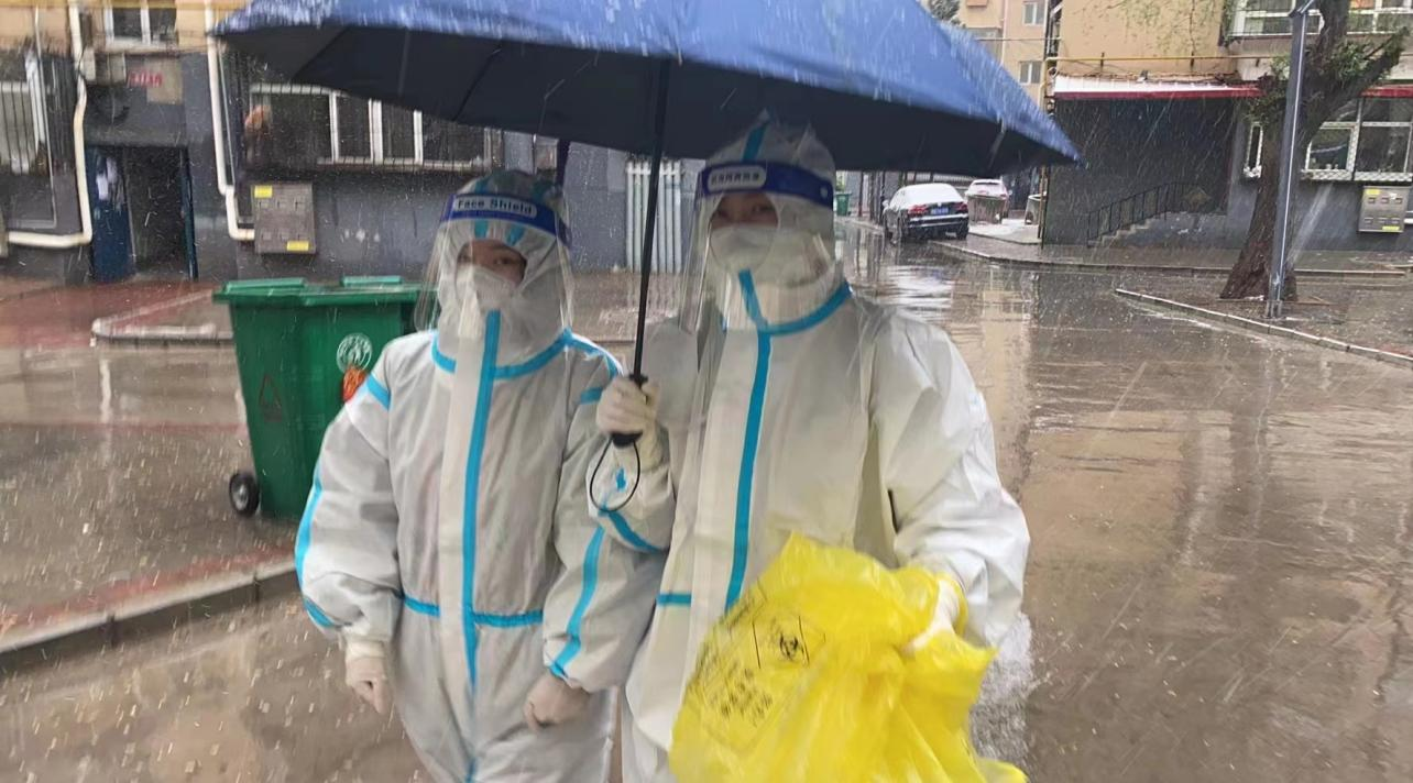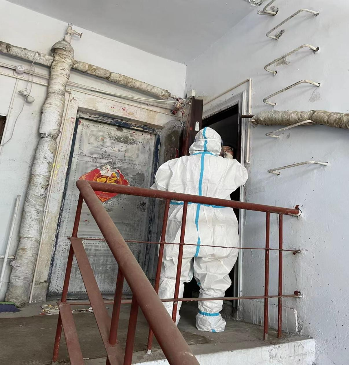 鐵路地區是此次疫情的高風險地區,新華街社區衛生服務中心承擔了新華街街道10個社區66個小區居家隔離人員“五包一”的入戶核酸采集工作。由于轄區內的老舊小區多且分散,多為老式步梯樓房,醫護人員只能徒步于各小區之間,穿著笨拙的防護服一層層爬樓梯,挨家挨戶進行信息登記、核對、解釋、宣教、采樣。經常幾個小時下來全身就被汗水浸透,身體疲憊不堪。他們每天面對的不僅是感染的高風險還有嚴重的體力透支,卻始終都做到堅持嚴字當頭,保證防護、采樣、標本收集及轉運、醫廢處置全過程操作規范,有效杜絕了交叉感染,在全力切斷社區疫情傳播上貢獻出巨大的力量。