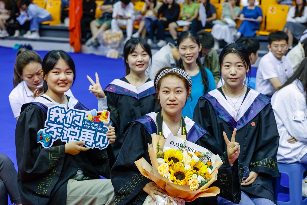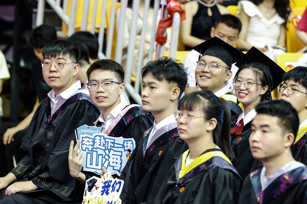 2023屆學生畢業(yè)典禮在雄渾昂揚的校歌《使命》中落下帷幕。至此,8320名2023屆畢業(yè)生將帶著母校的殷切希望,帶著師長的殷殷囑托,帶著學弟學妹們的美好祝愿,秉承同大“厚德、博學、慎思、篤行”校訓,踔厲奮發(fā)、勇毅前行,在青春的賽道上奮力奔跑,努力創(chuàng)造無愧于時代的精彩人生。(文/王巍 圖/余致楠、楊翼賓、鄧昕冉)