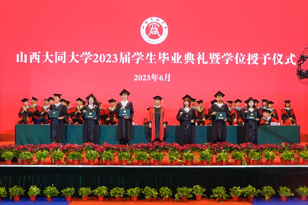 研究生畢業(yè)生代表、2020級化學專業(yè)馮海弟同學,本科畢業(yè)生代表、云岡學學院2019級文物保護技術專業(yè)高琳同學發(fā)言,代表全體畢業(yè)生向尊敬的師長、可愛的母校表達深厚感恩之情,寄語同學們找到自己的方向,成就最好的自我,綻放最美麗的人生;堅定理想、相信努力,心懷感恩、永念同大,牢記囑托、做新時代中國青年,在時代的坐標上不斷標記出璀璨奪目的出彩青春,讓青春韶華的光芒閃耀夢想星空。