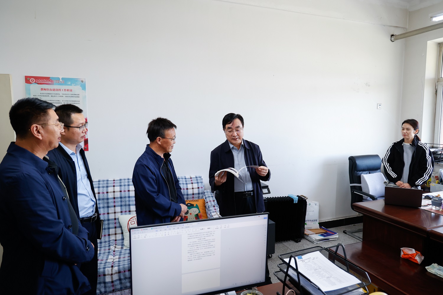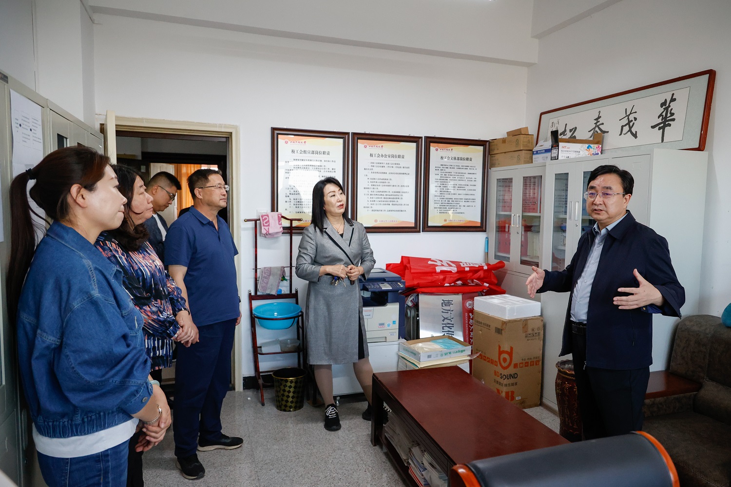 趙水民在調研中和各部門工作人員親切交談,要求管理服務部門干部應具備過硬的素質能力、展現良好的精神風貌。他指出,機關部門、教輔單位是學校開展管理服務工作的重要支柱,要樹立“部門就是學校”的理念,增強擔當實干的本領,創造性地謀劃推動本職工作,切實做好學校的參謀助手。要以持續推進“八大作風建設”為引領,切實轉變工作作風,提升管理服務水平,真正使轉變作風、優化服務的過程成為提高履職本領、增強責任擔當的過程。