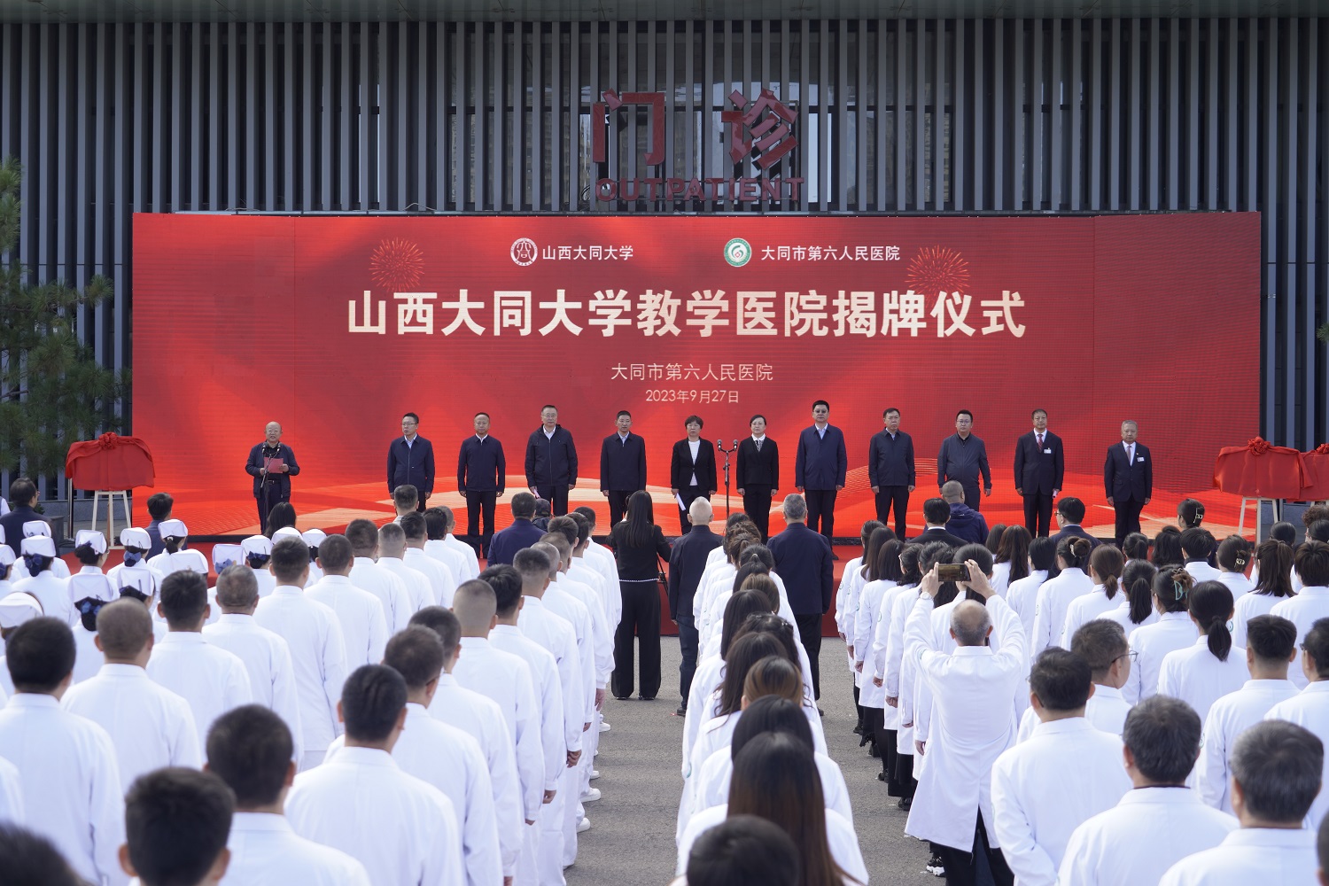 9月27日上午,我校教學醫院揭牌儀式在大同市第六人民醫院舉行。校黨委副書記、校長姚麗英,校黨委常委、副校長馬軼明,大同市政協副主席、九三學社大同主委張海波,大同市政府督查專員王學東,大同市衛健委黨組書記、主任紀青,大同市醫保局黨組書記、局長郝軍生,大同市民政局黨組成員、二級調研員張文才,市第六人民醫院黨委書記曹德、院長劉海云及市直公立醫院、國藥同煤總醫院、山西大同大學附屬醫院、山西大同大學醫學院、云岡區衛體局、云岡區醫保局等負責同志出席揭牌儀式。揭牌儀式由大同市民政局黨組書記、局長王東升主持。