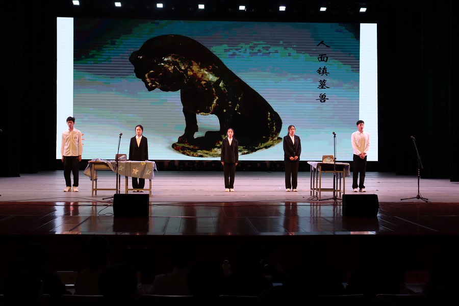 50余支隊伍提交作品,經過大賽初賽和復賽選拔,8支隊伍進入決賽。校青年志愿者協會宣講團作開幕演講,訴說青年一代對華夏文明的熱愛與崇敬。決賽中,選手們以舞臺劇的形式進行現場演繹。青春在于奮斗隊將石塔擬人化,帶我們重走北魏九層千佛石塔曲折的回家之路;星夜聚夢隊從北魏漢化這一歷史事件入手,講述司馬金龍墓漆畫屏風的前世今生;時光見證者隊則穿梭回北魏時期,見證北魏藍半球形玻璃小瓶的制造技術從中亞傳平城并廣受喜愛……一場又一場的精彩表演將我們的思緒帶回千百年前,讓我們再次聽到文物的聲音。