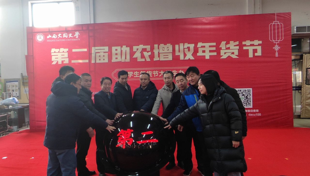 在同大師生的見證下,與會(huì)嘉賓共同點(diǎn)亮開幕球,宣布山西大同大學(xué)第二屆“助農(nóng)增收年貨節(jié)”開幕!