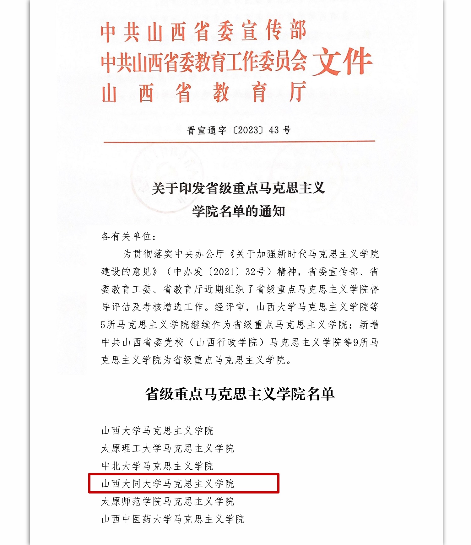 學院獲批山西省重點馬克思主義學院,獲批1個大同市馬克思主義理論“名家”工作室,1人被山西省教工委推薦為陜西省高校思政課專家,9人入選大同市新時代強音宣講團。2名學生入圍全國高校馬克思主義學院青年學子聯學聯講黨的二十大精神系列活動。學院成功舉辦第六屆全國中青年馬克思主義學者專題論壇,開展3期思政學生綜合素質能力培養活動,舉辦思想政治教育專業師范生教師技能大賽。