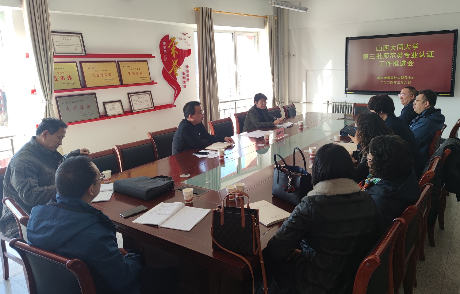 為貫徹落實山西省教育廳師范類專業(yè)認證啟動會要求,高效推進我校第三批師范類專業(yè)認證工作,3月6日,我校召開第三批師范類專業(yè)認證工作推進會。體育教育、學前教育、心理學、思想政治教育、數(shù)學與應用數(shù)學、歷史學6個師范專業(yè)所在學院的院長、專業(yè)負責人,教學質(zhì)量監(jiān)控與督導中心全體人員,有關校教學督導委員參加會議,會議由教學質(zhì)量監(jiān)控與督導中心主任田穎主持。
