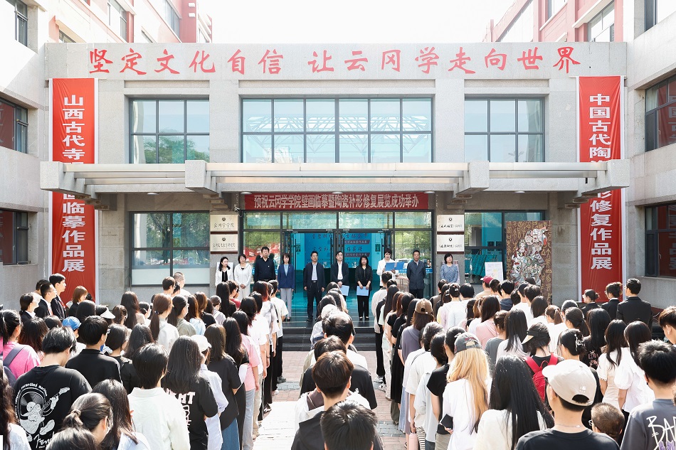 5月20日,由山西大同大學(xué)黨委宣傳部、山西大同大學(xué)云岡學(xué)學(xué)院主辦的“晉壁輝煌·鑒古描今:山西古代寺觀壁畫臨摹作品展”暨“完型補闕·巧繕薪傳:中國古代陶瓷補形修復(fù)作品展”開幕。該展覽旨在深入學(xué)習(xí)貫徹習(xí)近平總書記考察云岡石窟重要指示精神,展示我校云岡學(xué)學(xué)科建設(shè)及應(yīng)用型本科教學(xué)成果,豐富廣大師生校園文化生活,促進校園精神文明建設(shè)。校黨委書記趙水民,校黨委常委、副校長石鳳珍,我校特聘云岡學(xué)專家、原云岡研究院黨委書記張焯,校黨委常委、宣傳部部長王娟,云岡學(xué)學(xué)院班子成員等出席開幕式。開幕式由云岡學(xué)學(xué)院黨委副書記、執(zhí)行院長李珍梅主持。