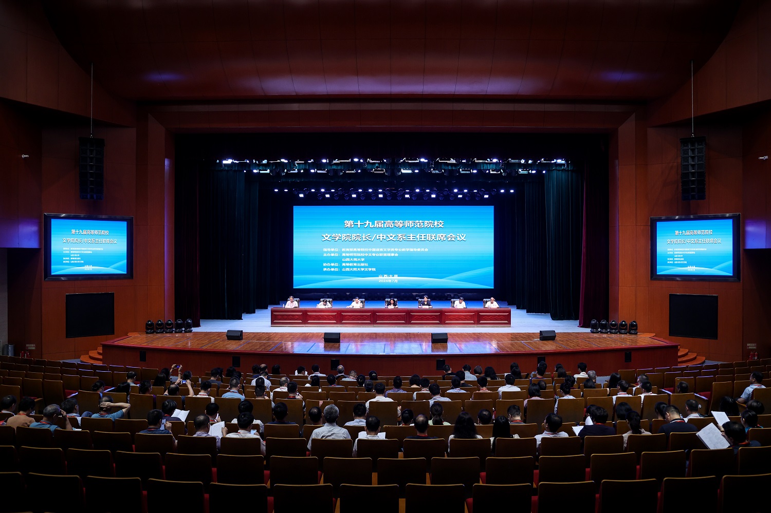7月20日,第十九屆全國高等師范院校文學院院長/中文系主任聯席會議在我校本真樓演播廳舉行,來自全國80余所高等師范院校文學院和中文系的140余名領導和專家參加會議。教育部中國語言文學類專業教學指導委員會副主任委員劉利,高等教育出版社副社長張麗娜,高等師范院校中文專業聯盟理事會理事長王本朝,山西大同大學黨委常委、副校長石鳳珍出席會議并致辭。山西大同大學文學院院長張忠堂主持,文學院黨委書記劉德明在閉幕環節致辭。