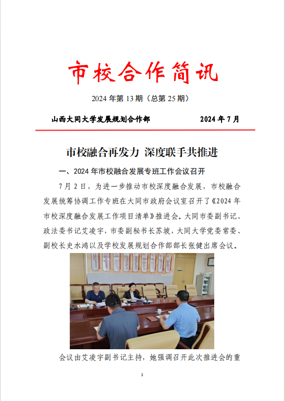 同時,發展規劃合作部在服務地方工作方面也做出了積極貢獻。溝通地方、積極推動成立了由大同市委副書記和山西大同大學黨委書記、分管副校長牽頭的市校融合發展統籌協調工作專班以及學校服務地方工作機構,為學校服務地方工作提供了明確的組織架構和工作職責。通過這些機構,進一步加強與大同市的溝通協調,深化雙方合作,推動校地融合發展取得更多成果。