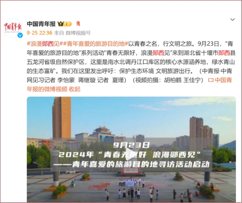 胡柏鶴制作的活動啟動視頻在《中國青年報》官方微博發布