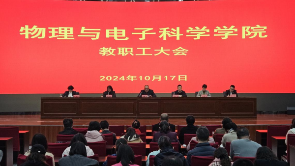 當(dāng)前位置:? 10月17日下午,物理與電子科學(xué)學(xué)院在慎思樓報(bào)告廳召開2024年全體教職工大會(huì),總結(jié)上半年工作,安排部署下一階段學(xué)院工作。學(xué)院黨委副書記吉秦雁主持。