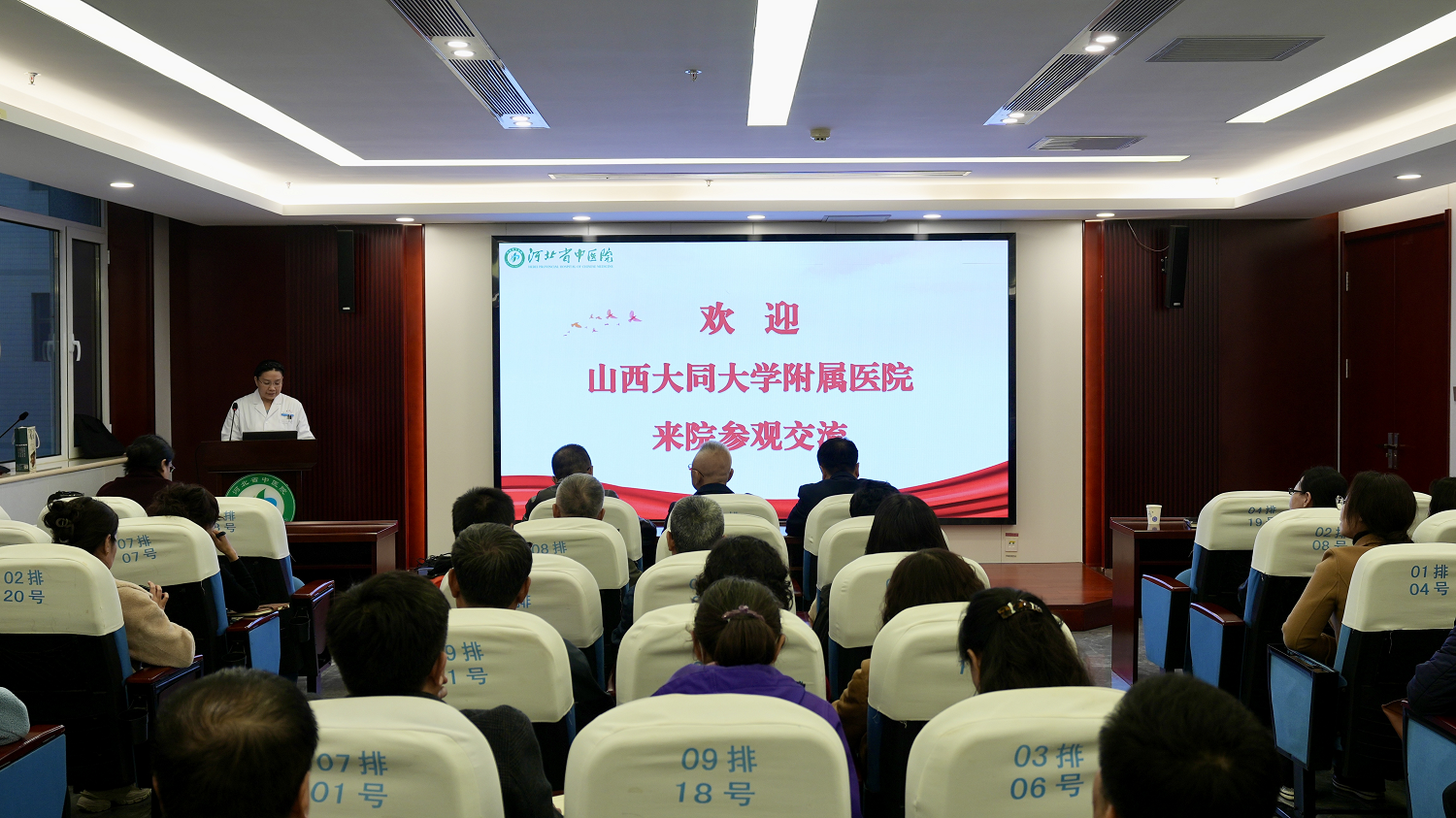 11月14日,一行人赴河北中醫藥大學第二附屬醫院考察學習。在共同觀看醫院宣傳片了解醫院基本情況后,雙方各科室人員有序對接,圍繞醫院等級評審重點及核心指標,中醫優勢專科、優勢病種,重點專科建設和中醫藥發展管理相關問題進行了實地交流。