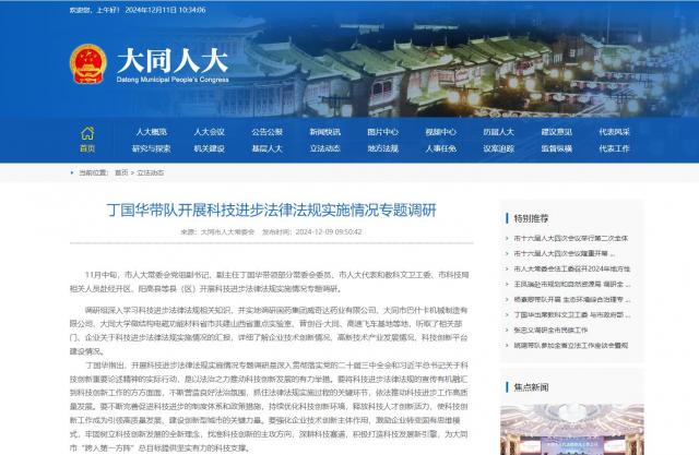 11月中旬,市人大常委會黨組副書記、副主任丁國華帶領部分常委會委員、市人大代表和教科文衛(wèi)工委、市科技局相關人員赴經開區(qū)、陽高縣等縣(區(qū))開展科技進步法律法規(guī)實施情況專題調研。
