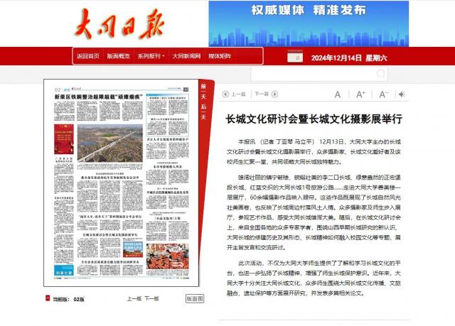 本報訊(記者 丁亞琴 馬立平)12月13日,大同大學主辦的長城文化研討會暨長城文化攝影展舉行,眾多攝影家、長城文化愛好者及該校師生匯聚一堂,共同領略大同長城獨特魅力。