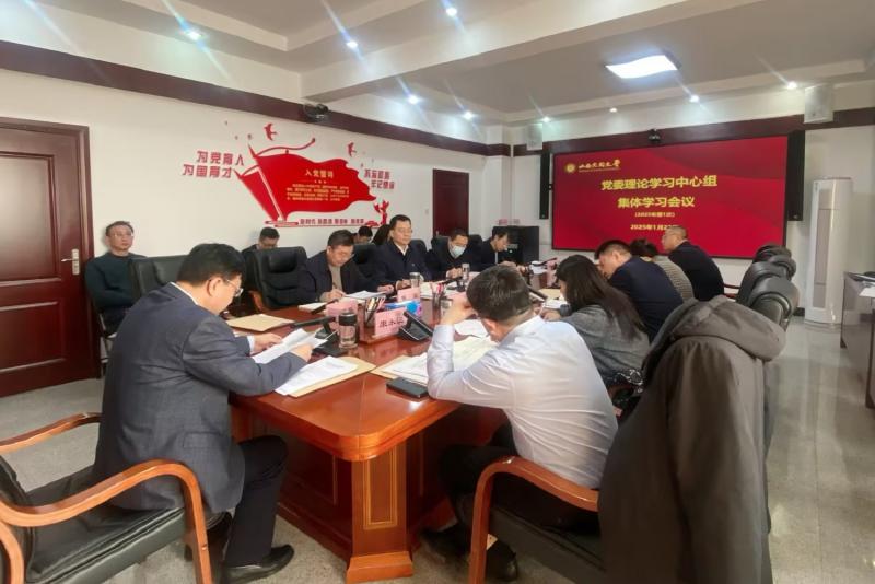? 1月23日,校黨委召開常委會會議暨理論學習中心組集體學習會議,圍繞習近平總書記近期重要講話重要指示精神展開學習研討。校黨委書記趙水民主持。